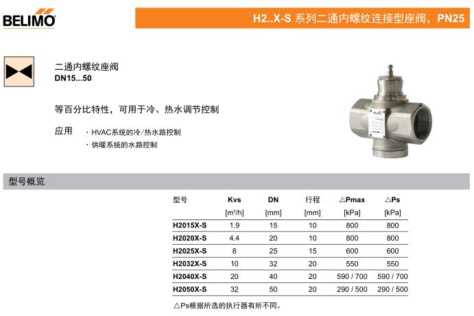 • H2..X-S 系列二通內螺紋連接型座閥