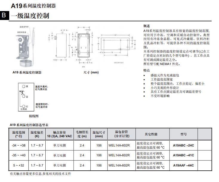 • A19單級(jí)溫度開關(guān)
