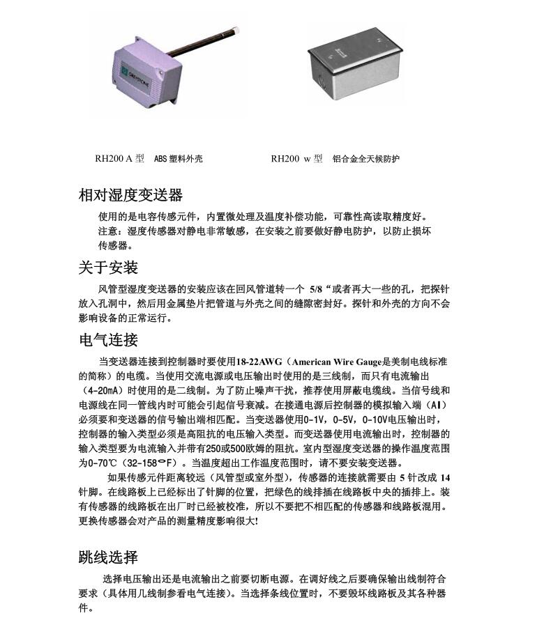 • 風(fēng)管單濕度變送器RH200