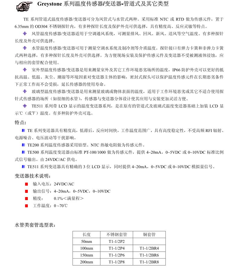 • 管道式溫度傳感器/變送器TE