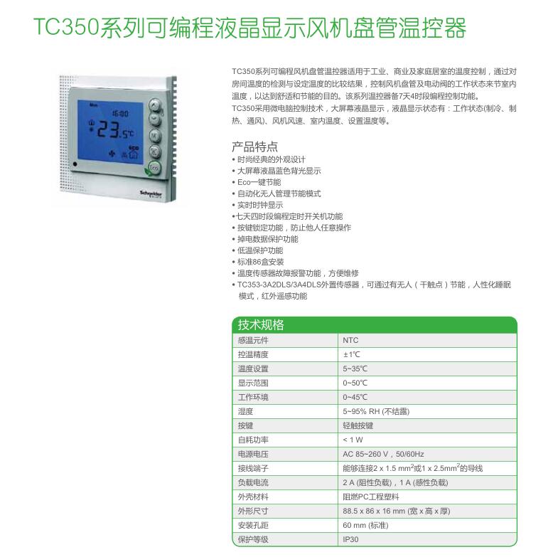 • TC350系列可編程液晶顯示風(fēng)機(jī)盤管溫控器