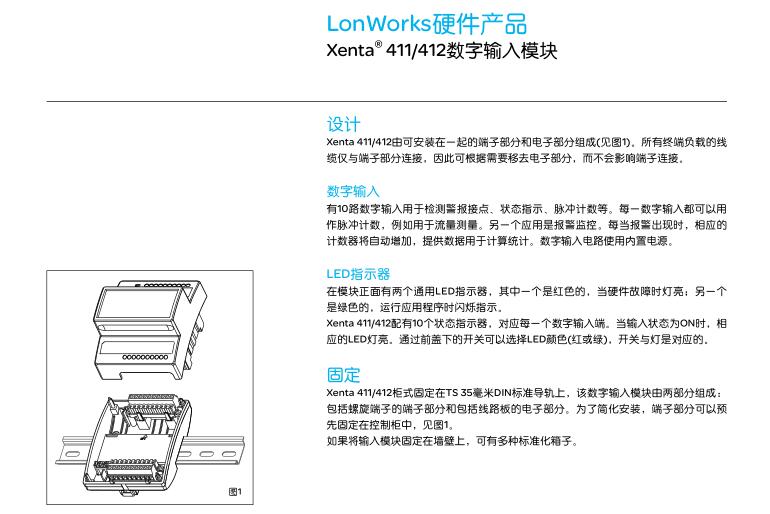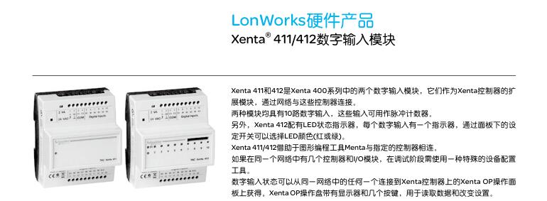 • Xenta411/412數字輸入模塊
