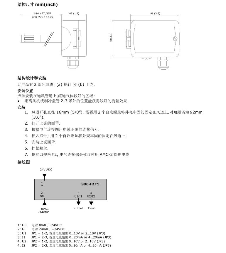 • 風管溫濕度傳感器